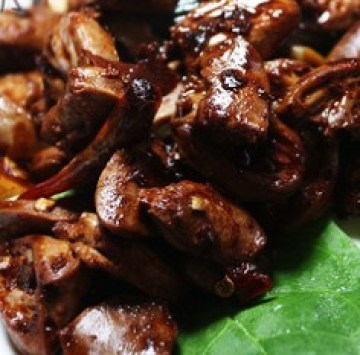 5.加入鸡心翻炒,变色后加入老抽,一点点糖,快炒出锅