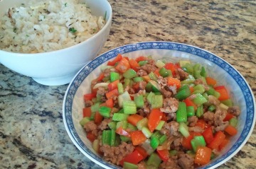 豬肉末1兩,紅椒1只,西芹4根,薑蒜,鹽,生抽老抽,十三香粉