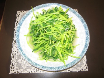 苋菜炒的时候极易出水,满满大锅,炒到最后只有一小盘。所以入锅以后用筷子翻炒,才能让所有叶片在尽快都受热,炒的时间千万不能太长,要不全出了水,叶子就不好吃了。