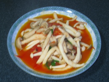 番茄一只, 鲜菌250克,适量的葱断.