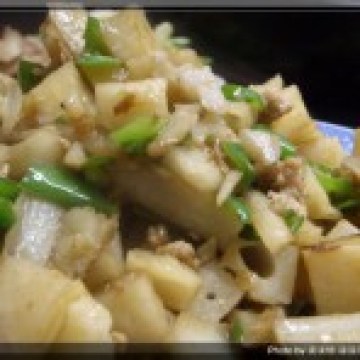 莲藕,青椒,蒜蓉,肉末,盐