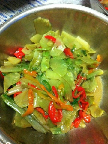 1.准备工作:将猪头肉煮或蒸十五分钟,取出洗干净切片备用,莴笋切片,莴笋叶子洗好切碎。