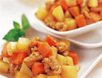 主料:土豆100克、胡萝卜100克、白菜150克、猪肉(瘦)100克