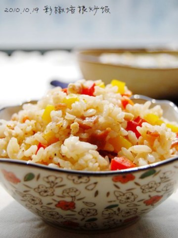 第一种:炒菜菜谱彩椒培根炒饭做法