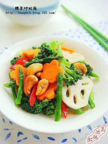 相关菜谱名称推荐:腰果炒时蔬,腰果炒时蔬,3色美味炒时蔬,乱炒时蔬