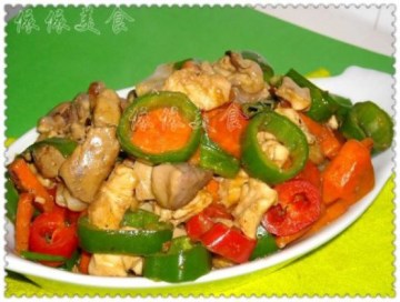 相关菜谱名称推荐:青红椒圈炒鸡丁,青红椒圈炒鸡丁,青红椒炒鸡蛋,青红椒炒卤丝