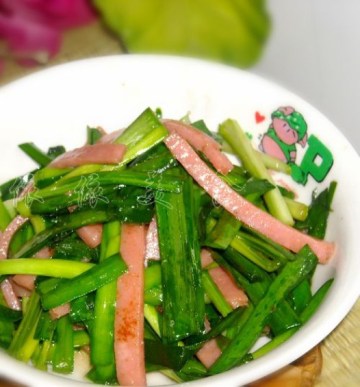 午餐肉100克,韭菜100克,盐