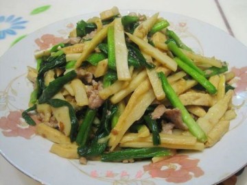 第二种:炒菜菜谱春笋韭菜肉丝小炒做法