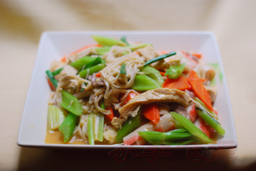 第二种:炒菜菜谱蟹柳冻豆腐金菇炒肉片做法