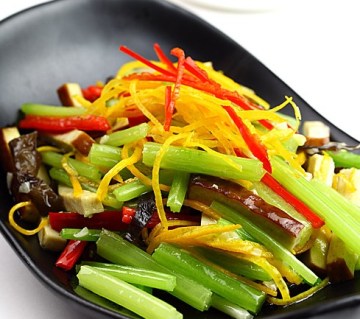 第一种:炒菜菜谱自创橙皮香芹炒熏干做法