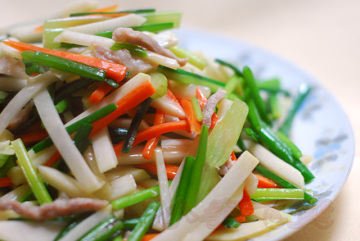 第一种:炒菜菜谱鲜头菜韭菜花炒肉丝做法