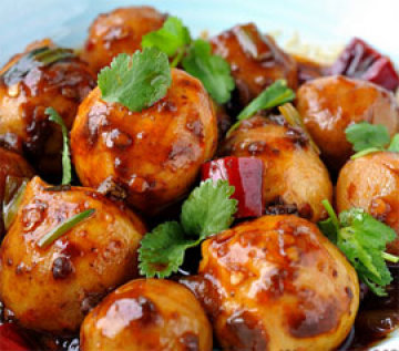 5、倒入水淀粉勾芡收汁,让每颗丸子都沾上豆豉酱汁即可出锅。