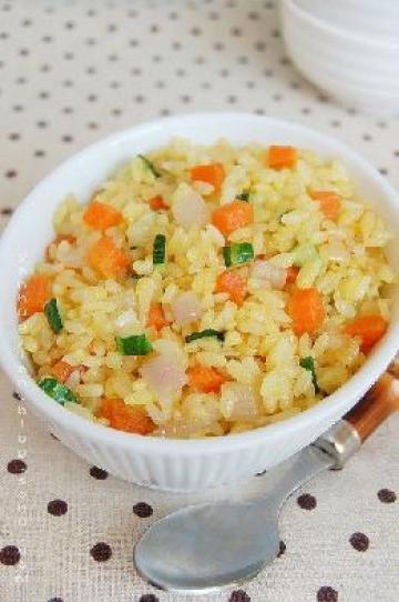 白米饭250克,蛋黄2个,胡萝卜1/2根,洋葱1/4个,黄瓜1/2根,盐3克,食用油15毫升