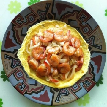 包菜(中等大小的四分一半),白背虾160g,鸡蛋2个,小红辣椒2粒,蒜米2粒