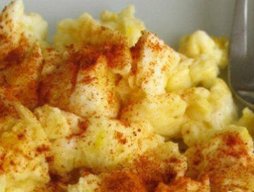 鸡蛋和奶油混合打散,平底锅放黄油,中火,黄油融化后放蛋液,中火炒熟。盛入盘子中以后撒姜黄粉,辣椒粉,白胡椒(或黑胡椒,姜粉,孜然,或喜欢的调为品即可)。