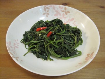 地瓜葉半盒,蒜3瓣,小紅辣椒3支,橄欖油一點點,鹽適量,香油一點點