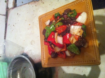 鱼片炒鲜笋、青红椒炒大肠、小炒牛肉、年糕辣炒鱿鱼