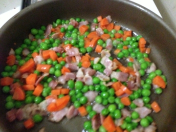 胡萝卜,豌豆,培根,米饭,油,盐