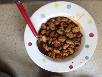 老干妈辣椒油还是能盖住蚌肉腥味的!
