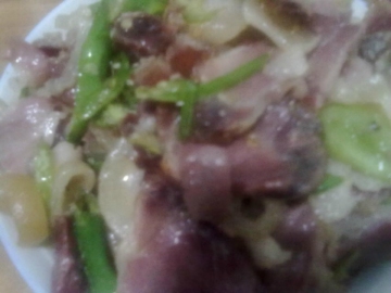 腊肉一小块 ,尖椒2个,葱若干,姜若干,白辣椒(这个也是从湖南带来的,好辣~)适当