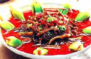 主料:黄牛毛肚,青蒜苗,葱白各250克,牛肝,牛腰,牛脊髓,醪糟汁各100克,背柳肉150克,鲜菜500克,干辣椒,姜片,豆豉各40克,料酒15克,花椒,精盐各10克,豆瓣125克,鸡蛋清6个,味精,香油各2克,牛肉汤2500克,牛肉200克。
