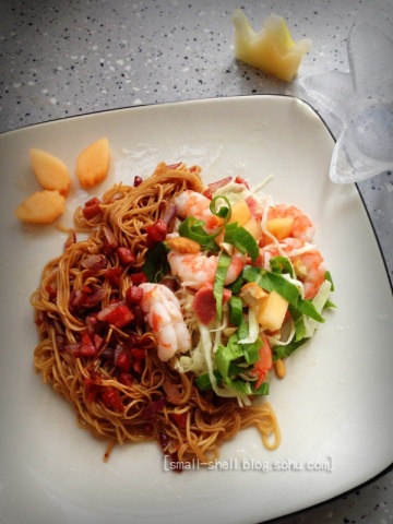 蜜瓜虾仁配酱油炒面做法已被82人烹饪过!