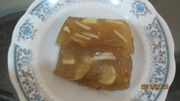 8、蒸好后放凉,糕切片,用油煎至两面金黄即可食用。