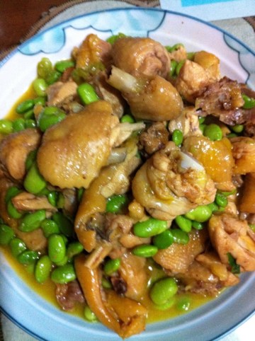 毛豆,童子鸡,生姜,料酒,生抽,盐,糖,味精