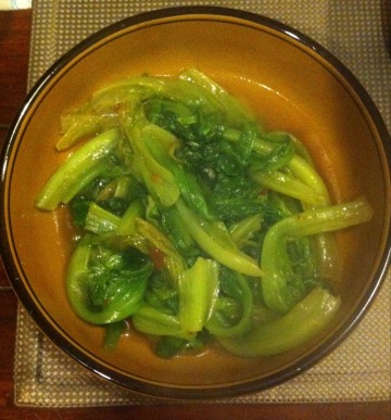 2.姜蒜爆香油锅,下生菜爆炒片刻以后加入适量的盐 、鸡精和2茶匙鲍鱼汁爆炒上色后撒上适量的麻油翻炒几下即可装盘。