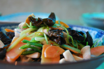 主料:蘑菇8朵,芹菜一把,黑木耳一些,胡萝卜半根