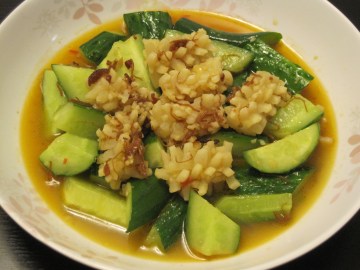 3、小黄瓜洗淨,切小段。