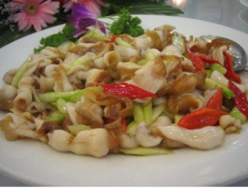 注意事项:鱿鱼焯水时间不宜过长,面酱煸炒时间不能太短,否则,酱香味不浓郁。