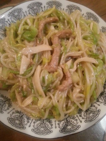 米粉,肉丝,牛心菜,杏鲍菇
