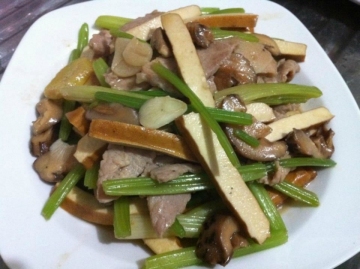 第二种:炒菜菜谱香芹豆干炒肉片做法