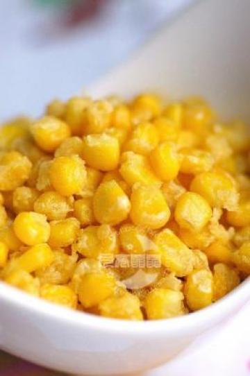 2.起个大油锅,烧热油,把裹了干淀粉的玉米粒放进去炸两三分钟,至锅铲捞起玉米粒有脆的感觉
