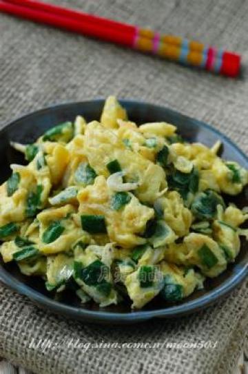 第五种:蒜苗虾皮炒蛋