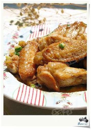 1.鸡翅用沙茶酱和生抽/香油/适量糖腌一小时或半天后小火煎熟.