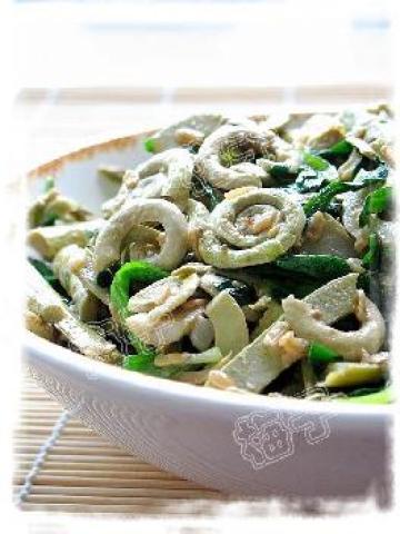 蕨菜,蒜蓉,姜丝,酒糟,韭菜,盐,油
