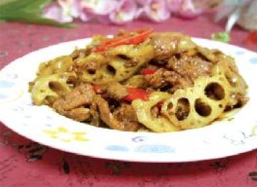 第一种:炒菜菜谱红椒莲藕炒牛柳做法