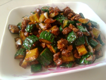 2、煸炒肉丁和黄瓜丁时火力小宜过旺。
