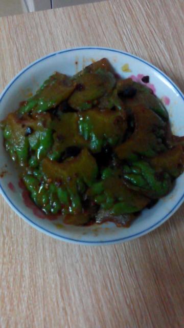 香辣豆豉一勺,苦瓜一个。