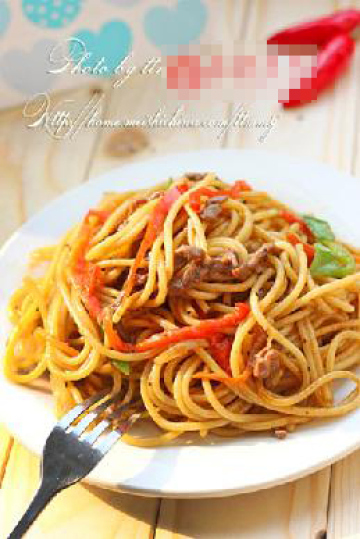 第一种:炒菜菜谱黑椒牛柳炒意面做法