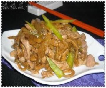 1.瘦肉切丝,用盐、生粉、油抓匀,腌15分钟