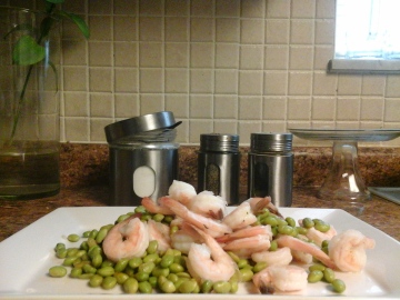毛豆250克 虾400克 蔬菜油一匙 有盐 料酒 各少许