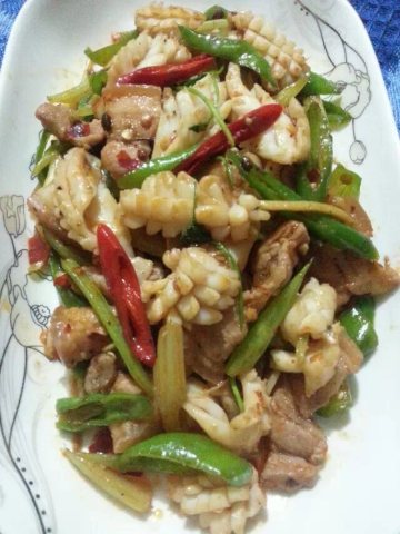 第二种:炒菜菜谱辣炒墨鱼五花肉做法