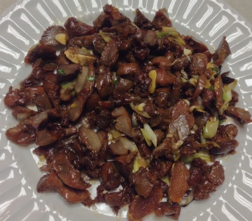 海鲜菇,鸡胗,青椒,葱蒜,味椒盐