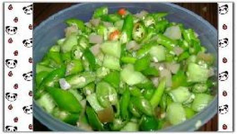 小尖椒,咸菜,黄瓜,米醋,香油,糖少许