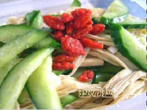 第二种:凉菜菜谱腐竹黄瓜拌枸杞做法