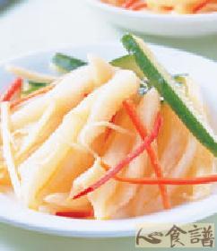 2.将作法1的所有材料放入盆中,加入白醋、细糖及盐一起拌匀。