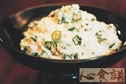 (2)在研钵里把豆腐和调味料磨匀再加入秋葵拌匀即可。